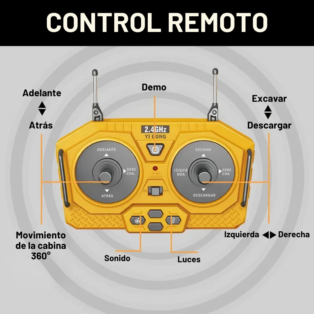 El control remoto ofrece movimientos suaves, giros precisos en cualquier dirección imitando muy bien los de una excavadora real