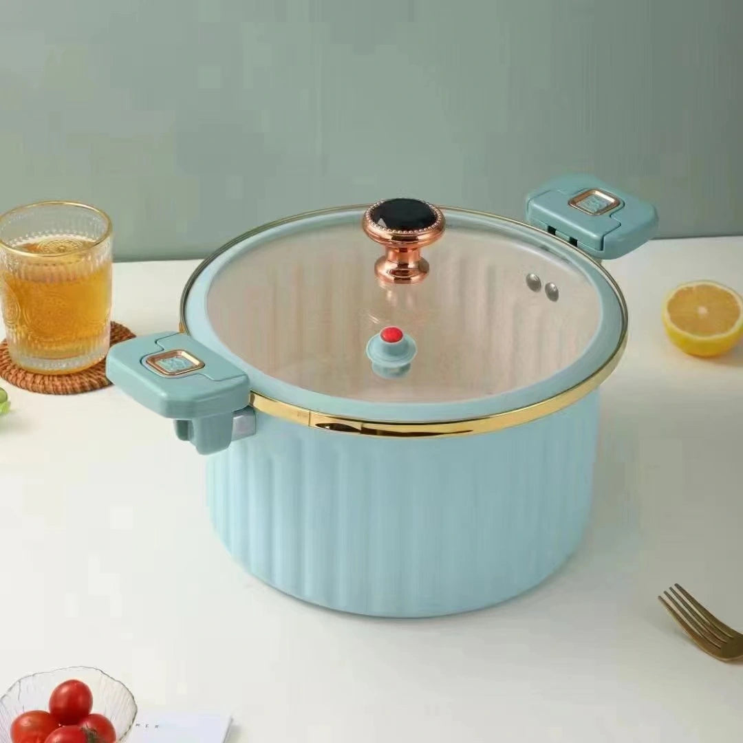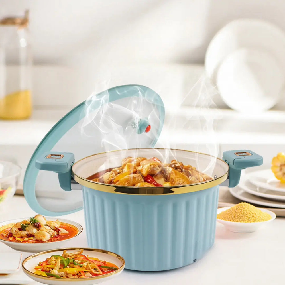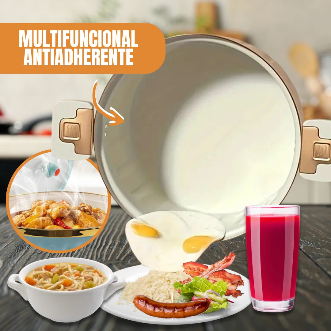 Cuenta con una válvula de alivio de presión y una tapa de bloqueo que mantienen el nivel de presión bajo control, garantizando un uso seguro en cada cocción.